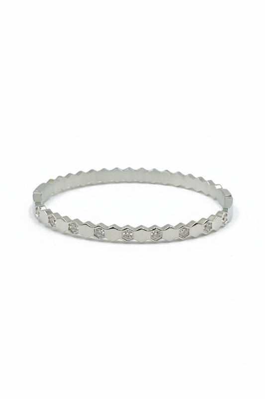 Bracelet jonc en acier inoxydable à strass hexagonaux pour femme